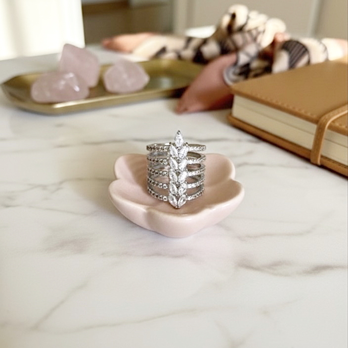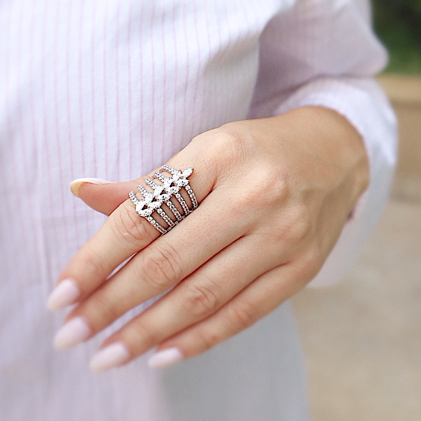 Composto por cinco linhas delicadamente alinhadas, o Anel Symphony traduz equilíbrio e elegância em um design único. Seu brilho intenso e acabamento impecável tornam a peça perfeita para quem busca sofisticação em cada detalhe. Um anel imponente e, ao mesmo tempo, versátil, ideal para elevar produções do dia a dia ou complementar looks mais sofisticados.