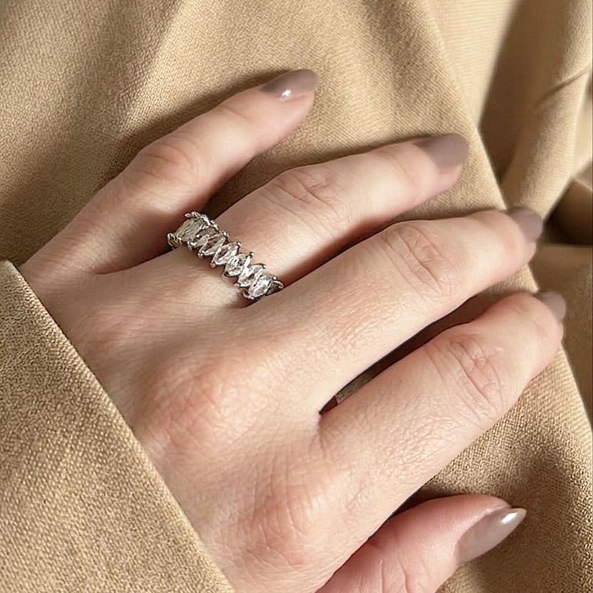 O Anel Navete é a definição de sofisticação moderna. Seu design com pedra alongada em formato navete cria um brilho único, delicado e super feminino — perfeito para quem ama joias que alongam os dedos e trazem aquela presença sutil, porém marcante.