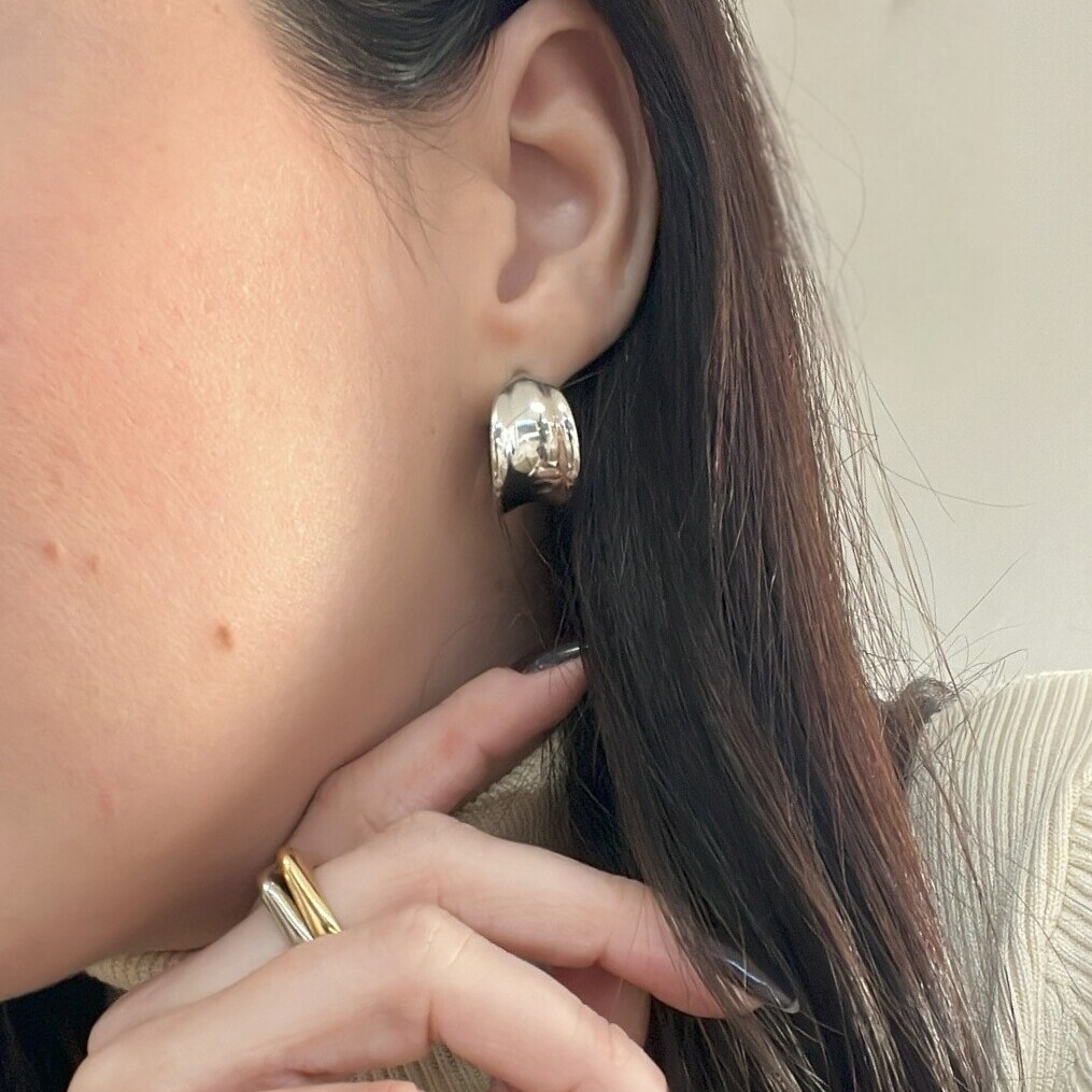 A Argola Bold é a definição de elegância moderna. Com seu formato médio, levemente larguinho e acabamento polido impecável, ela traz presença e estilo em cada detalhe. Uma peça versátil e atemporal, perfeita para transformar produções casuais em looks cheios de classe ou complementar composições sofisticadas.