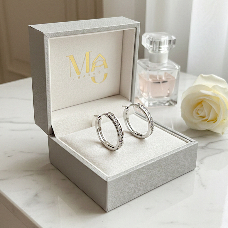 A Argola Carolina é a combinação perfeita de brilho e sofisticação. Com tarrachas para maior conforto, metade cravejada e metade polida, essa joia equilibra modernidade e tradição, criando um design único que valoriza qualquer look com um toque de charme.