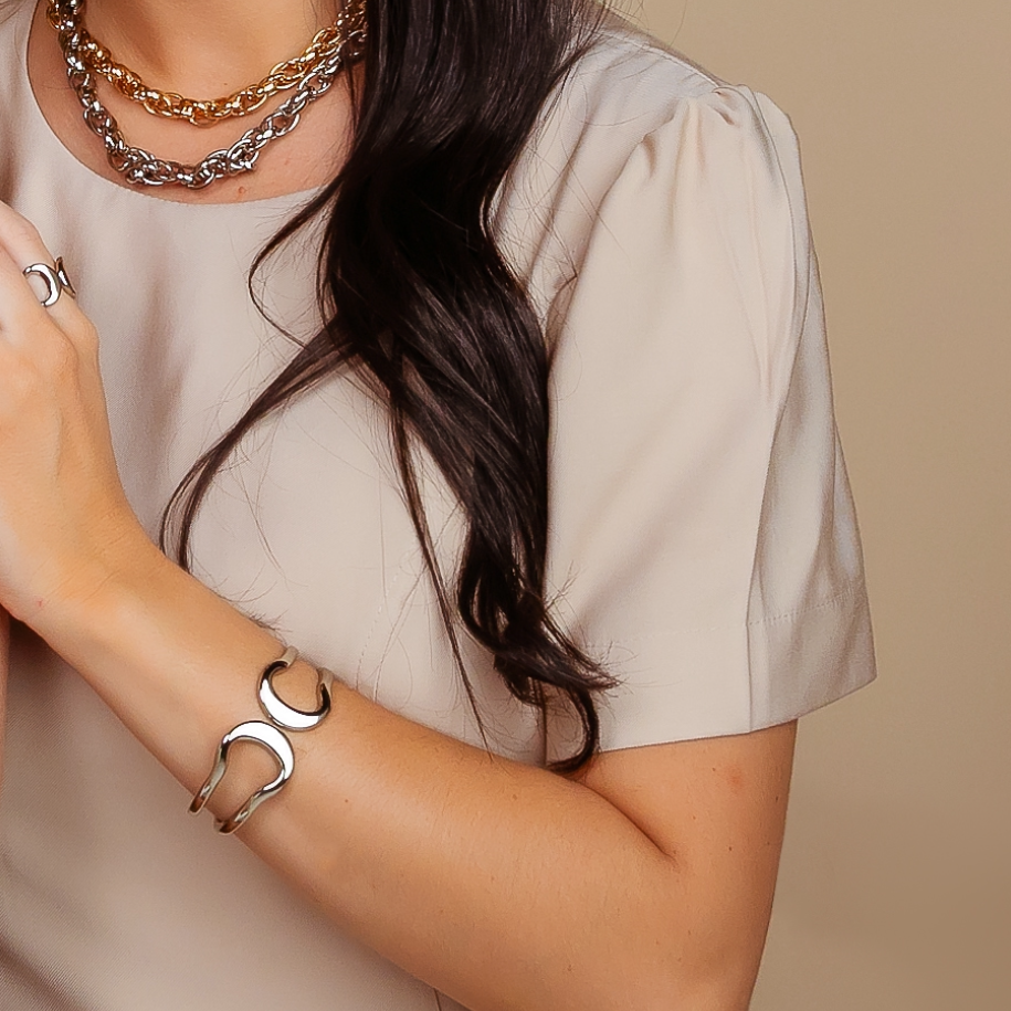 Nossas peças são semijoias de alta qualidade que levam 6 camadas de banho de ouro 18k ou ródio branco de alta qualidade, e não contém níquel, por isso são Hipoalergênicas e não provocam alergia.