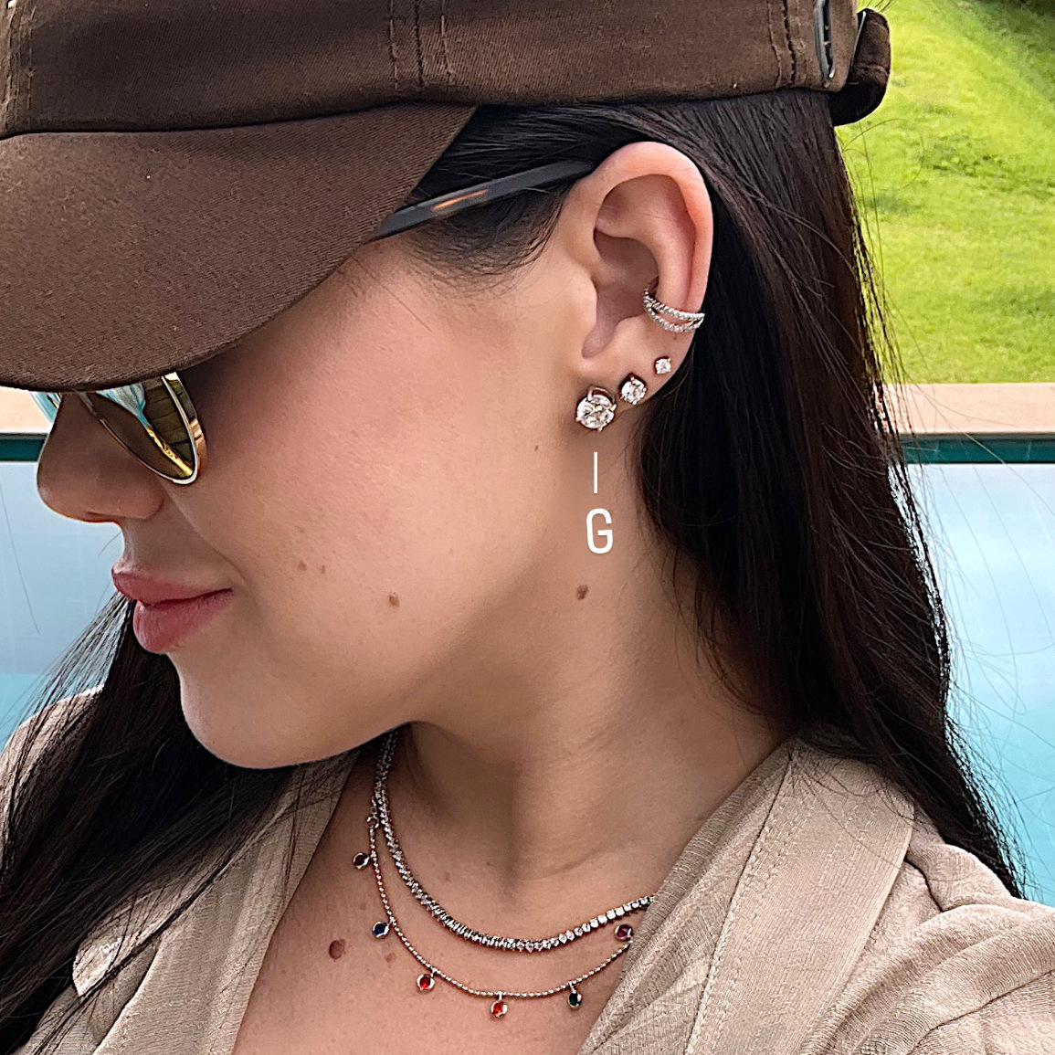 Elegante e marcante na medida certa, o Brinco Ponto de Luz G é perfeito para quem ama uma joia clássica com presença. Sua zircônia central captura a luz de forma intensa, iluminando o rosto e trazendo sofisticação instantânea para qualquer produção.