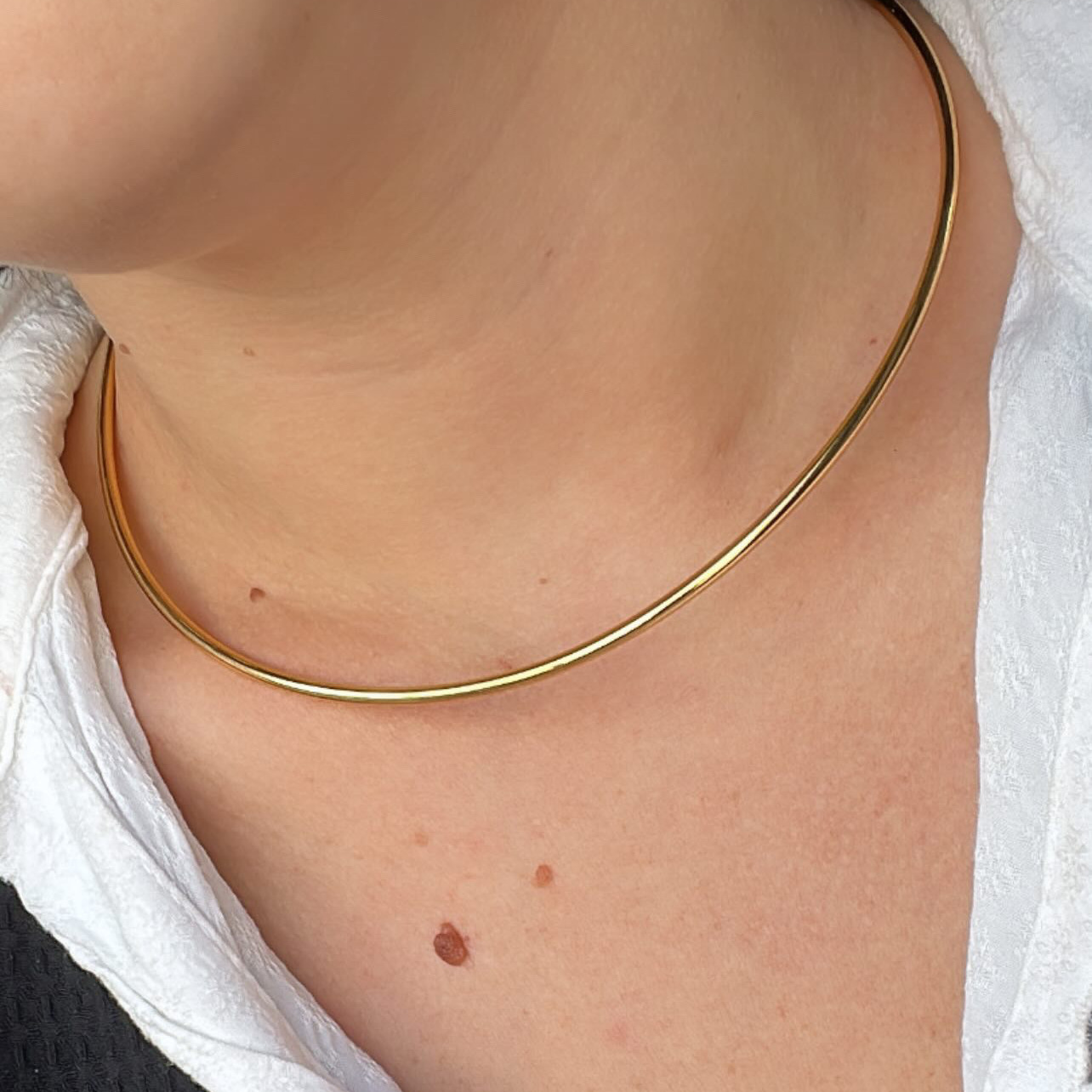 Com linhas limpas e design contemporâneo, a Choker Aro é a escolha perfeita para quem busca elegância com personalidade. Sua estrutura rígida abraça o pescoço com delicadeza, criando um visual moderno que vai do casual ao sofisticado sem esforço.