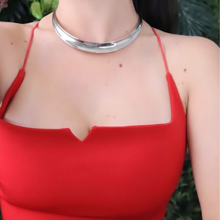 A Choker Cleópatra é para mulheres que gostam de marcar presença com sofisticação. Seu design moderno e imponente traz a referência das joias usadas por rainhas, com linhas elegantes que abraçam o colo e criam um visual de força e requinte. Uma peça que transforma qualquer look instantaneamente.