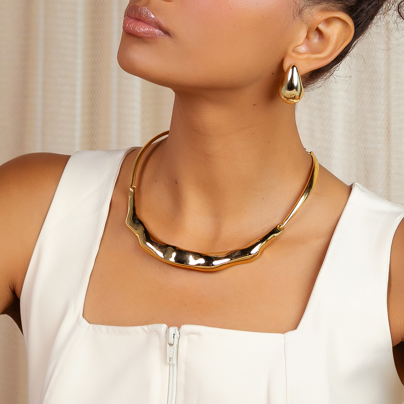 Moderna, elegante e cheia de presença. A Choker Contour tem um design fluido que contorna o colo com delicadeza, criando um efeito sofisticado e ao mesmo tempo marcante.