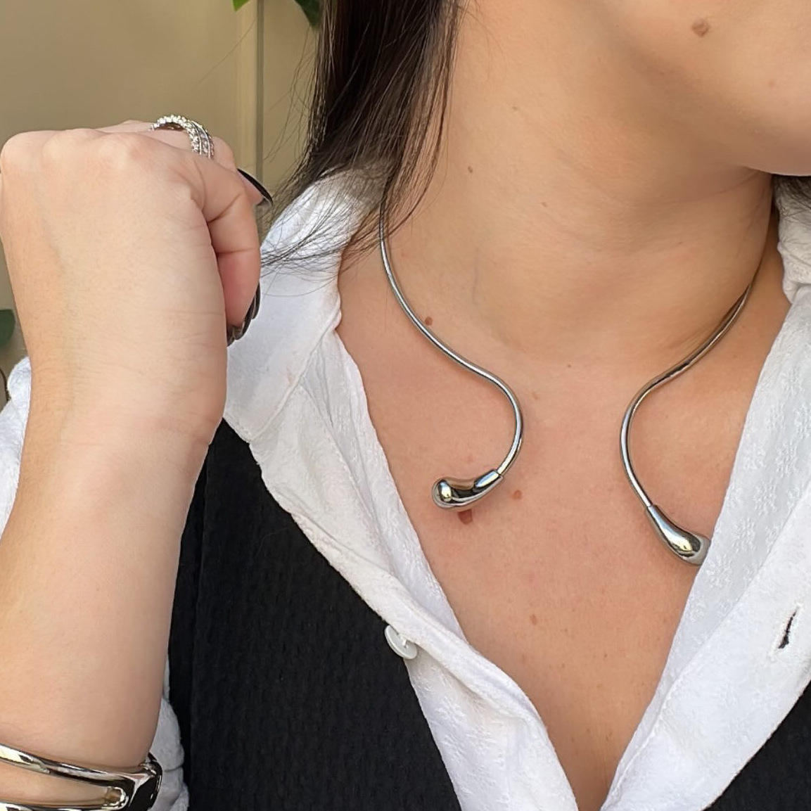 A Choker Gota é aquela peça que transforma qualquer produção com um toque de sutileza e sofisticação. Seu pingente em formato de gota traz um charme feminino irresistível, refletindo a luz com suavidade e destacando o colo de maneira elegante e moderna.