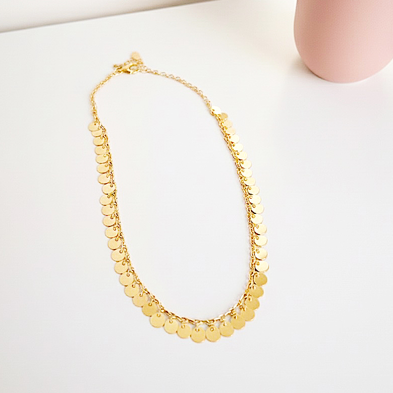 O Colar Drops é a escolha perfeita para quem ama acessórios delicados com um toque de personalidade. Suas pequenas plaquinhas pendentes criam um efeito de movimento suave, refletindo a luz de forma sutil e elegante, trazendo charme instantâneo para qualquer produção.