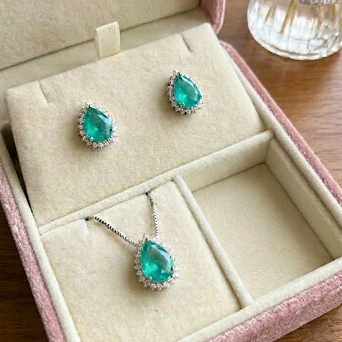 ✨ Conjunto Gota Turmalina em Ródio Branco – Sofisticação com um toque de cor ✨