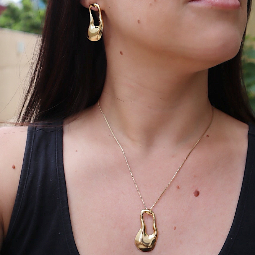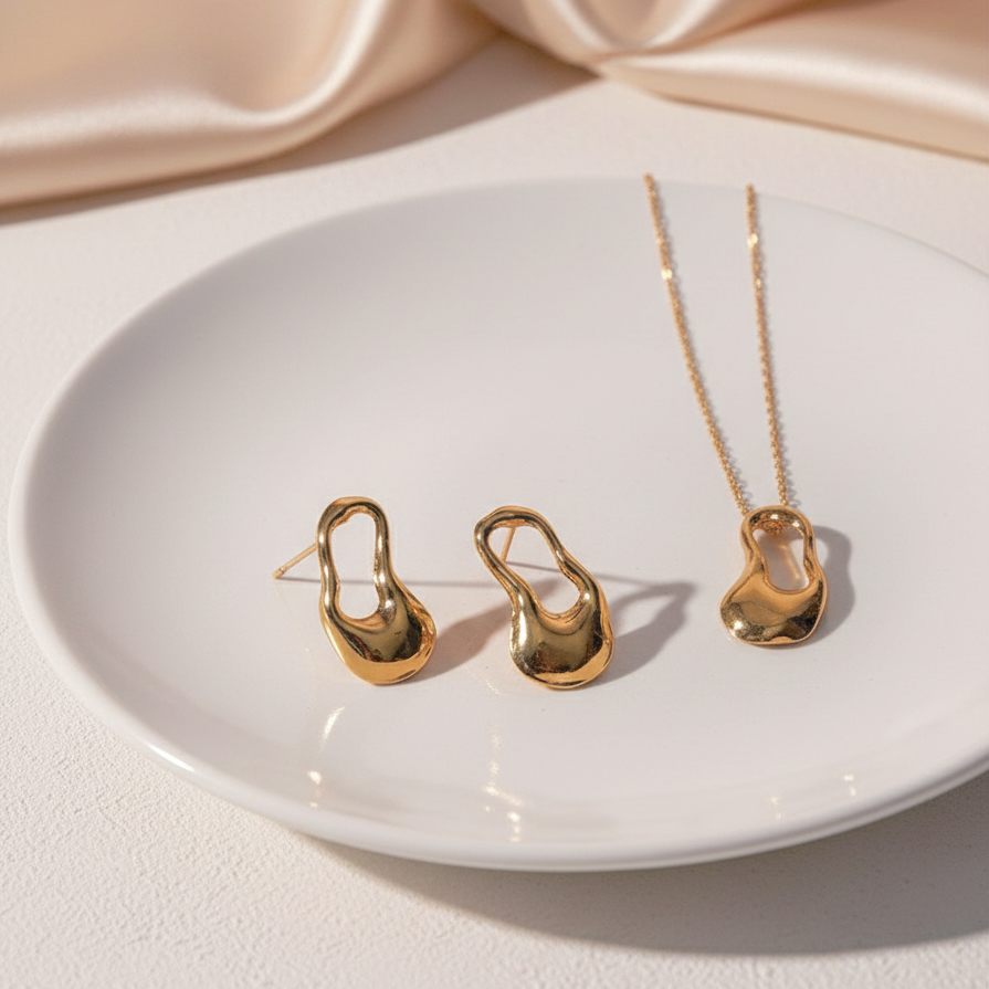 O Conjunto Organic une colar e brincos em uma proposta moderna e sofisticada, inspirada nas formas naturais e no movimento orgânico. Com design fluido e acabamento refinado, é a escolha ideal para quem busca joias contemporâneas, leves e cheias de personalidade.