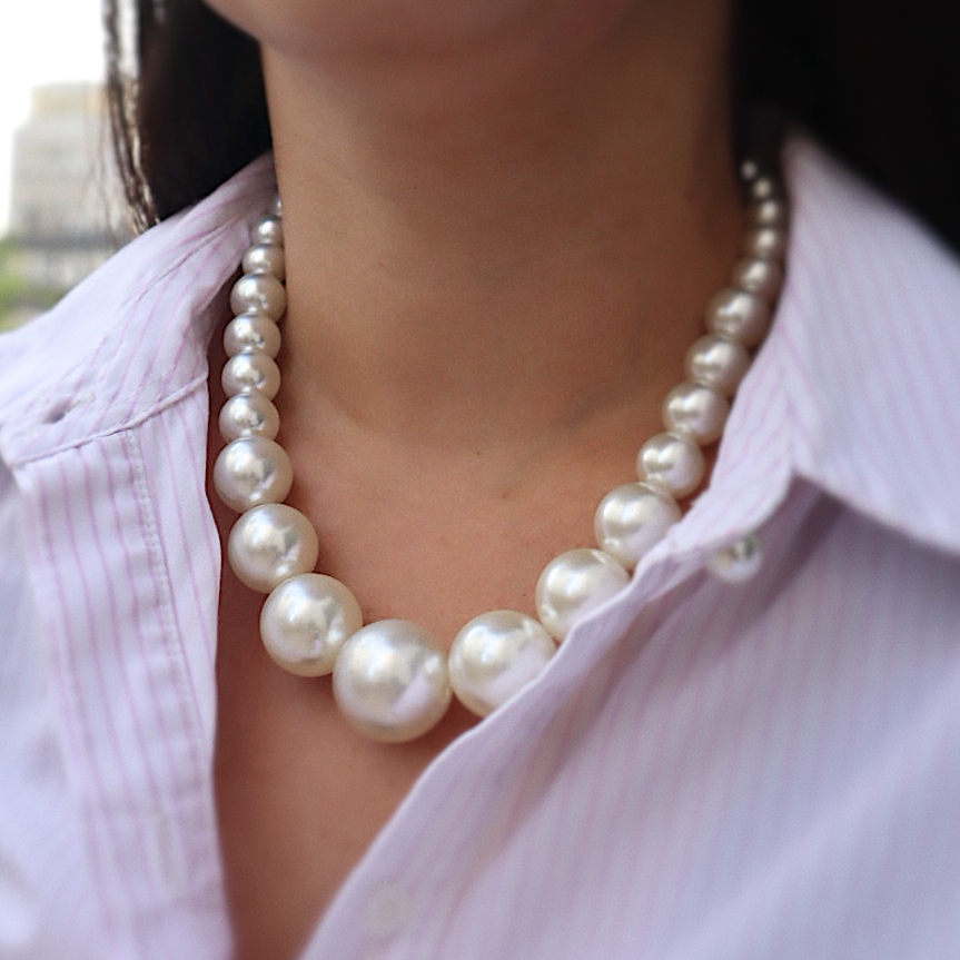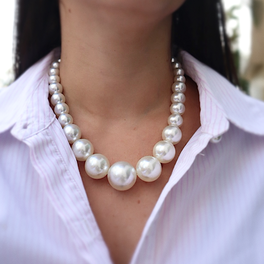 ✨ Conjunto com colar de pérolas médias e pérola maxi + brinco