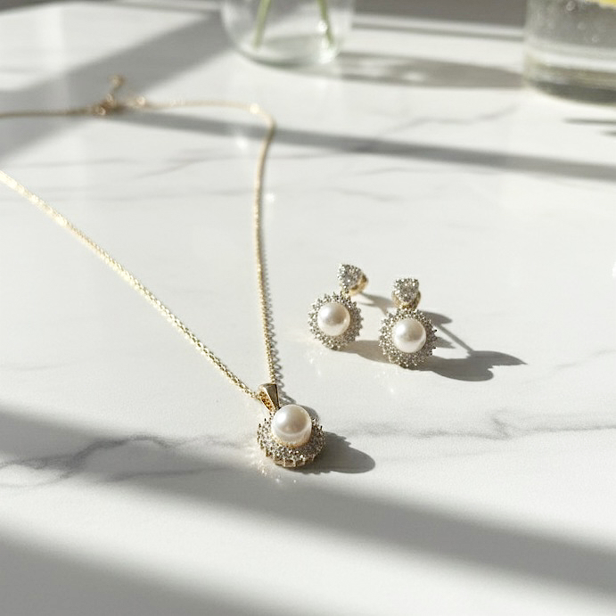 ✨ Um conjunto feito para mulheres que valorizam a beleza discreta e o brilho natural da pérola. ✨