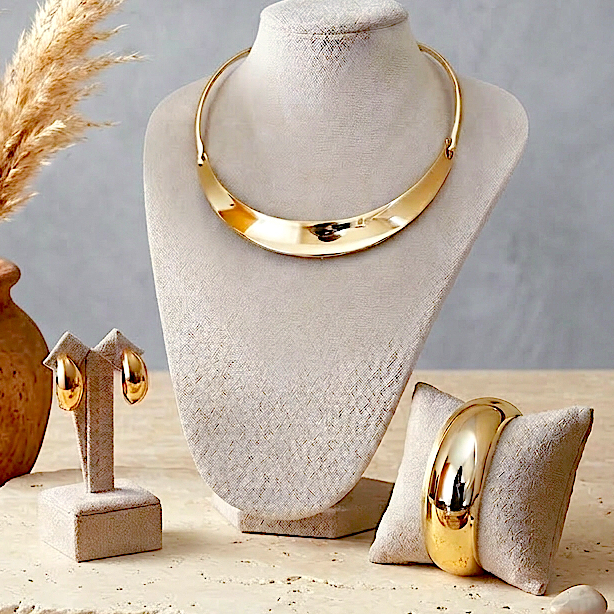 Inspirado na força e no magnetismo de uma verdadeira rainha, o Kit Cleopatra — composto por colar, pulseira e brincos — é uma expressão de luxo, presença e sofisticação. Seu design marcante valoriza o colo e ilumina o visual com um brilho envolvente e inesquecível.