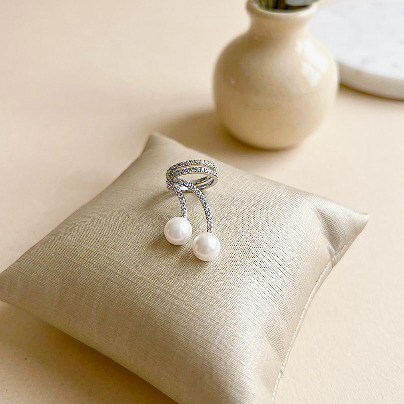 Elegante e delicado, o Piercing Fake Pérolas Cravejado combina o brilho sutil das zircônias com a sofisticação atemporal das pérolas. Com duas pérolas que trazem charme e equilíbrio à peça, ele ilumina a orelha com um toque clássico e moderno ao mesmo tempo.