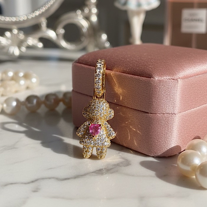 💖 Pedra central rosa ou azul, trazendo personalidade e ternura