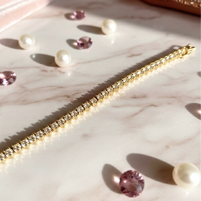A Pulseira Riviera 3 Pontas é a definição de glamour moderno. Seu design com três fileiras de zircônias perfeitamente cravejadas cria um efeito de luz impressionante, destacando o pulso com um brilho intenso e sofisticado.