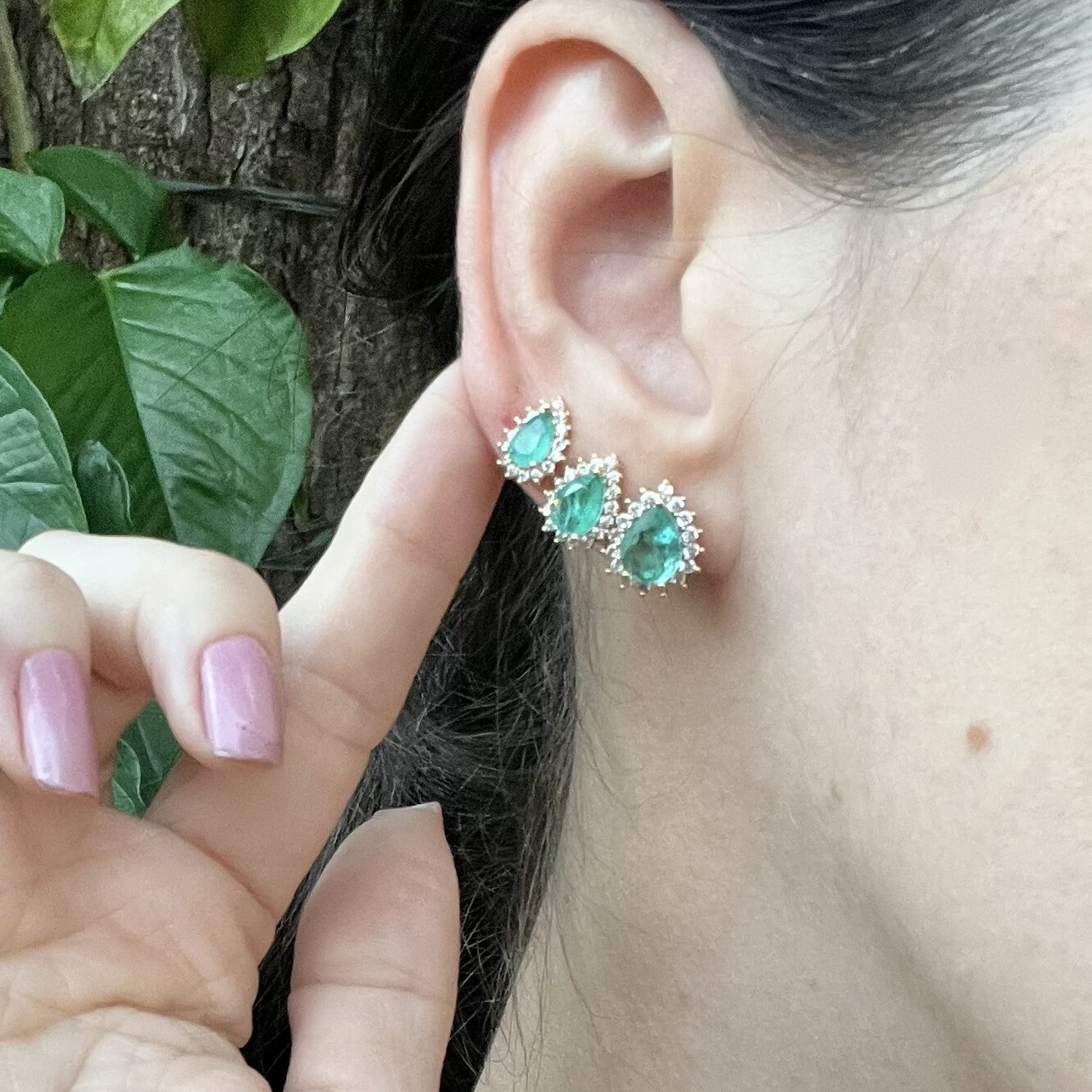 Charmoso e sofisticado, esse trio de brincos em formato de gota com turmalina traz um toque de cor elegante para o seu visual. Perfeito para composições leves e modernas.